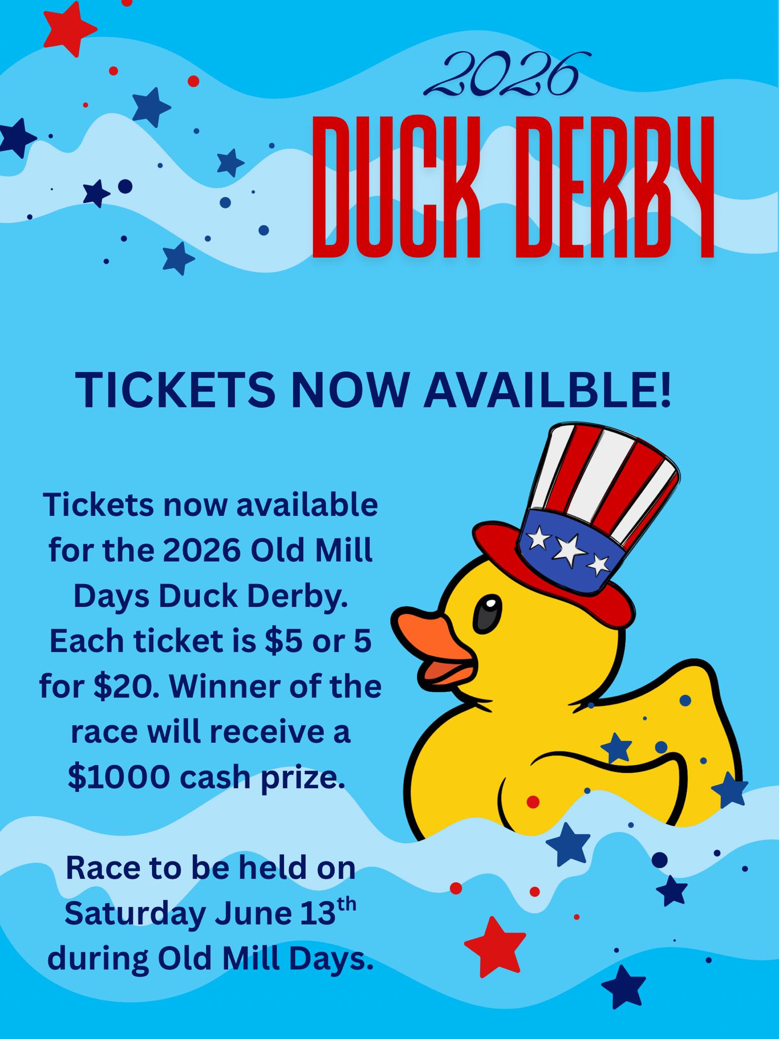 It’s that time again! With another Old Mill Days just around the corner we have our annual duck derby tickets now available. Tickets can be purchased at the Bradfordsville School Building during basketball games or directly from committee members. For any questions please feel free to message us.