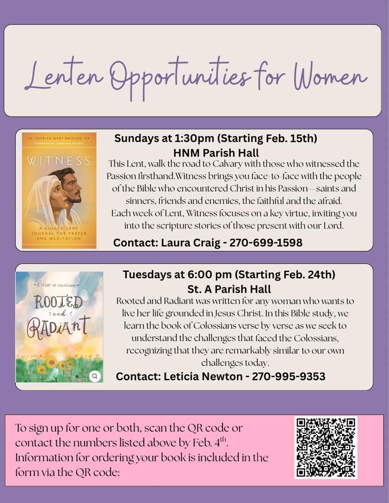 💜 Register HERE Lenten Opportunities for Women