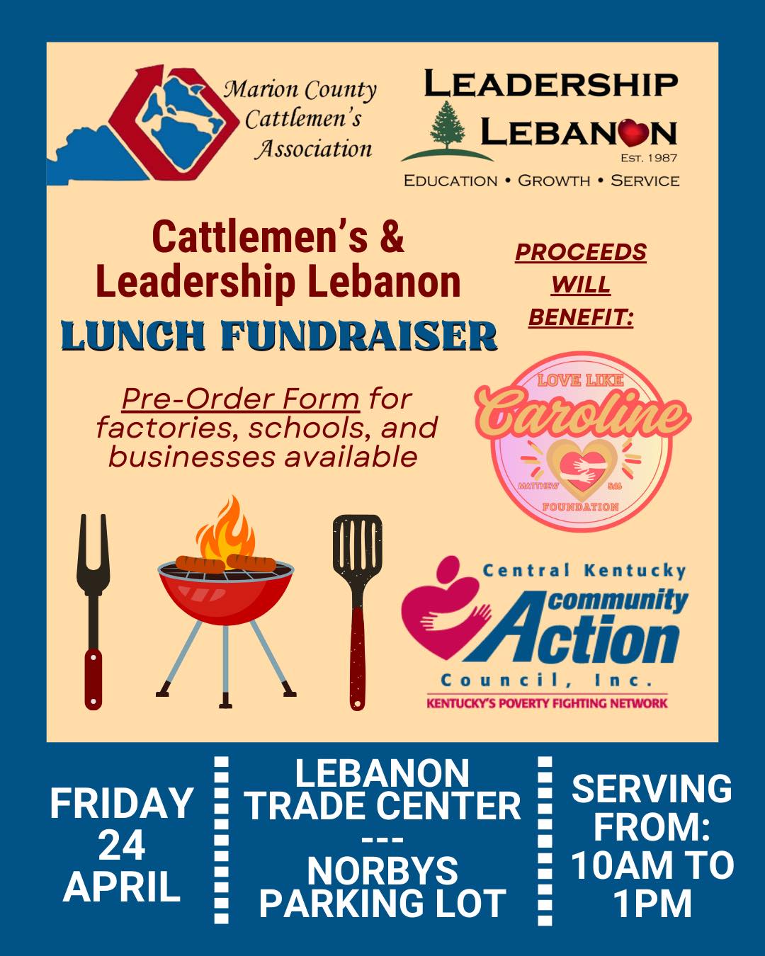 Join us Friday, April 24th from 10 a.m. till 1 p.m. for the Marion County Cattlemen’s Association Lunch Fundraiser!