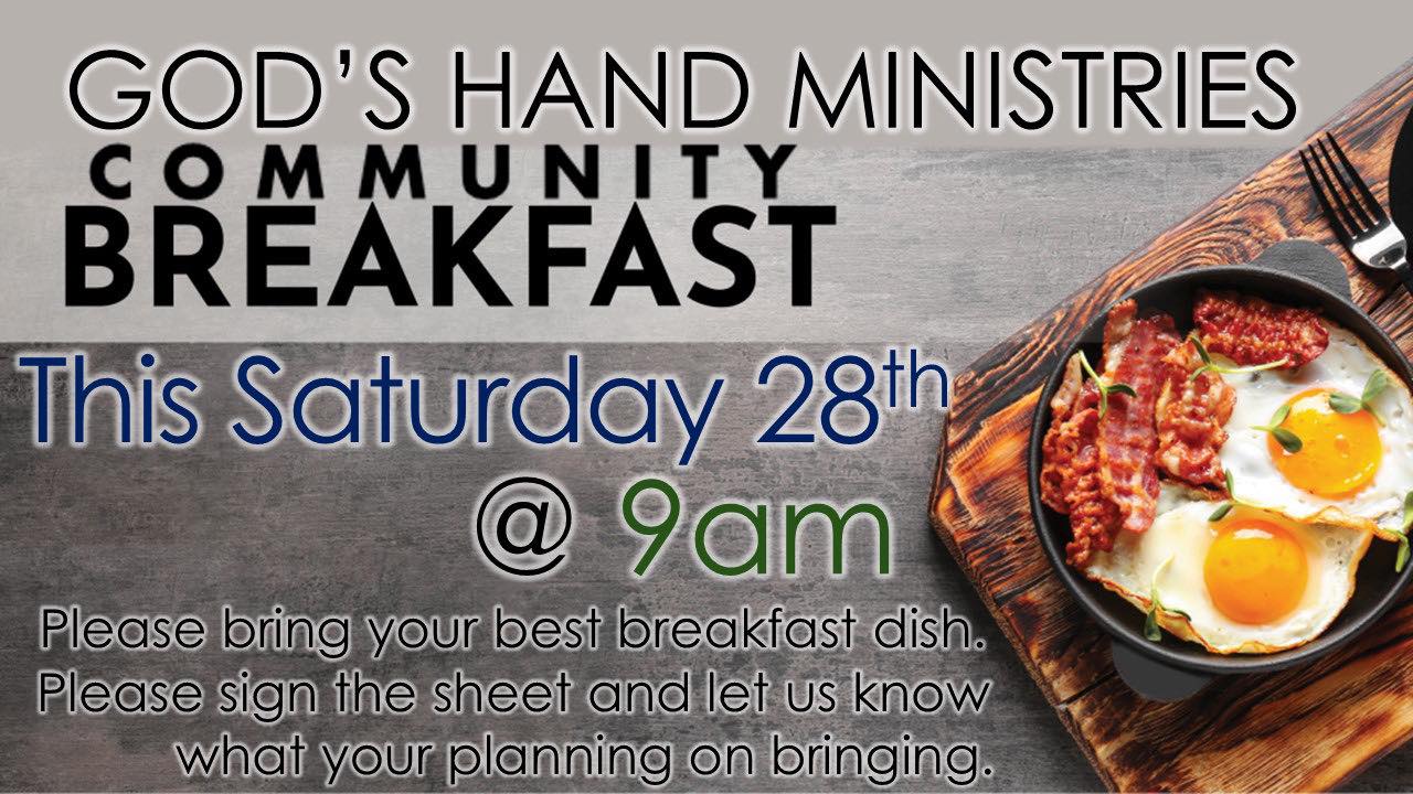 COMMUNITY BREAKFAST THIS SATURDAY!
