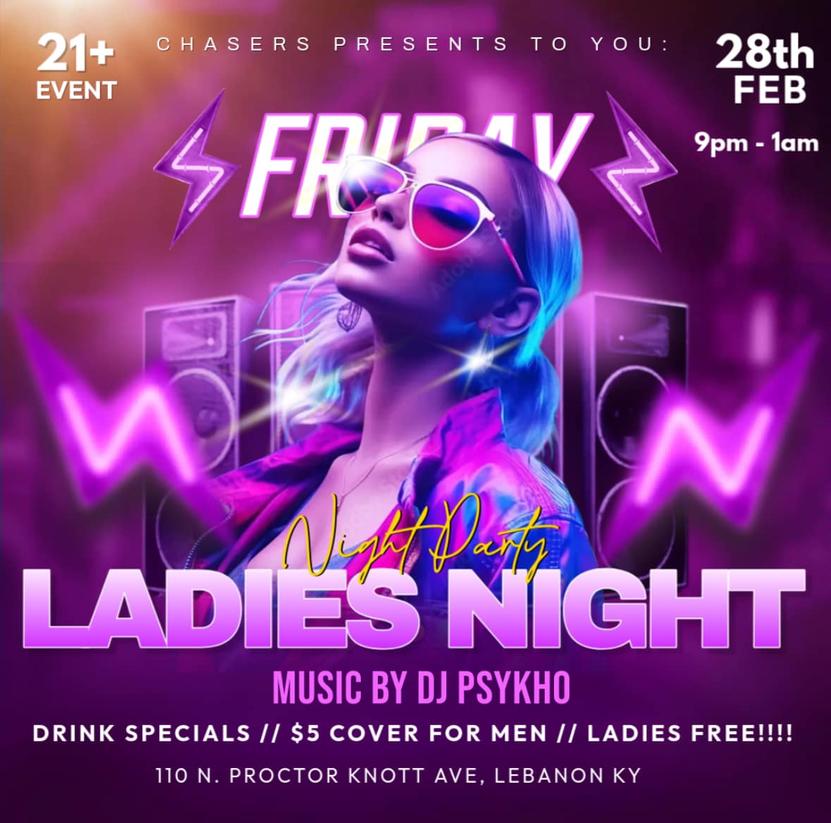 This Friday for our Ladies Night, we welcome back DJ PSYKHO to get all of you out on the dance floor beginning at 9pm. He’s gonna bring the hits, we have the drinks, you just bring yourself and your friends. Women get in free, $5 cover for men. Must be 21 to enter.