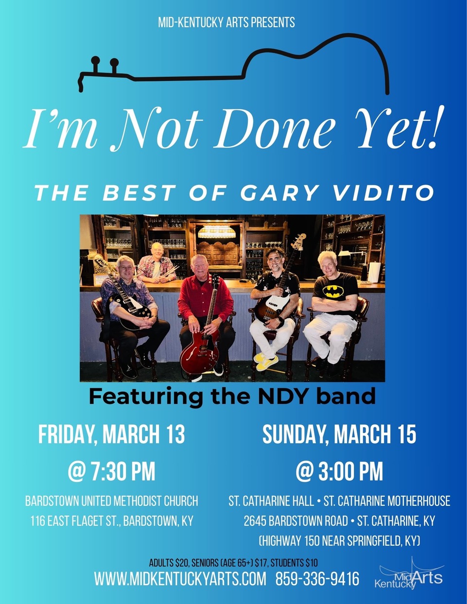 Come to our next great program, Gary Vidito’s new show, “I’m Not Done Yet!” March 13 & 15, 2026. Tickets available on line HERE or by calling 859-336-9416.