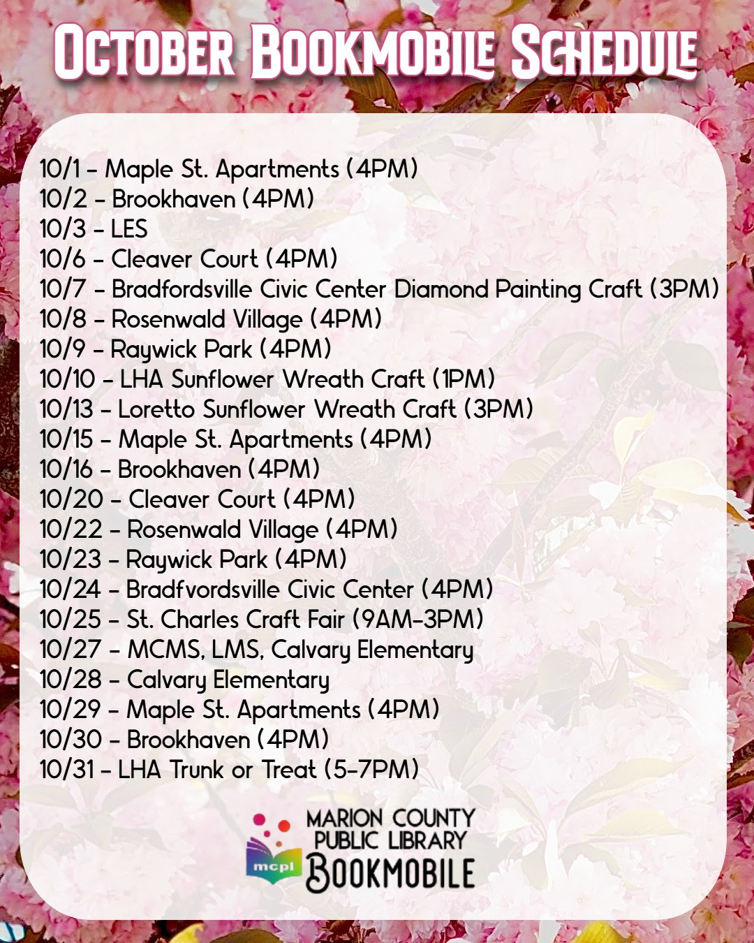 From their Facebook page https://www.facebook.com/MarionCoPublicLibrary