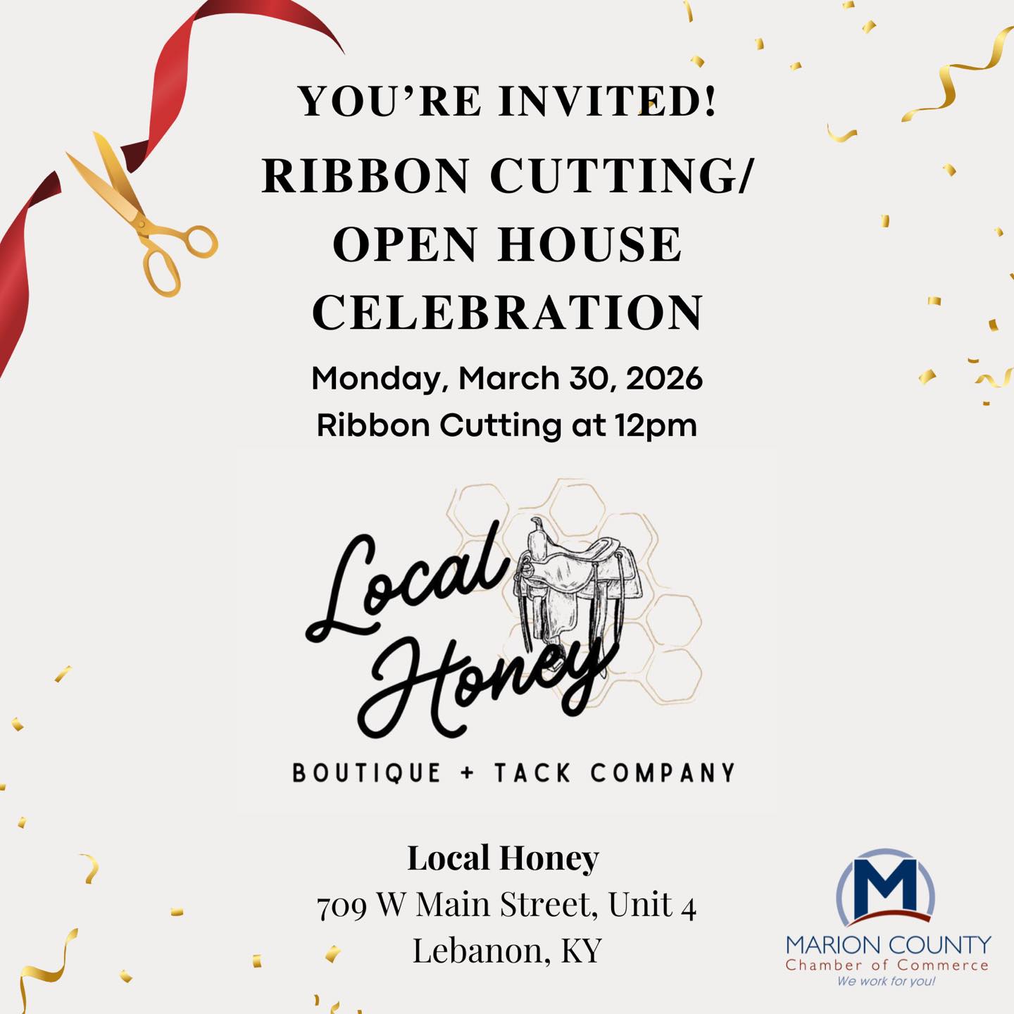 Join us for a Ribbon Cutting & Open House Celebration for Local Honey Boutique ๐