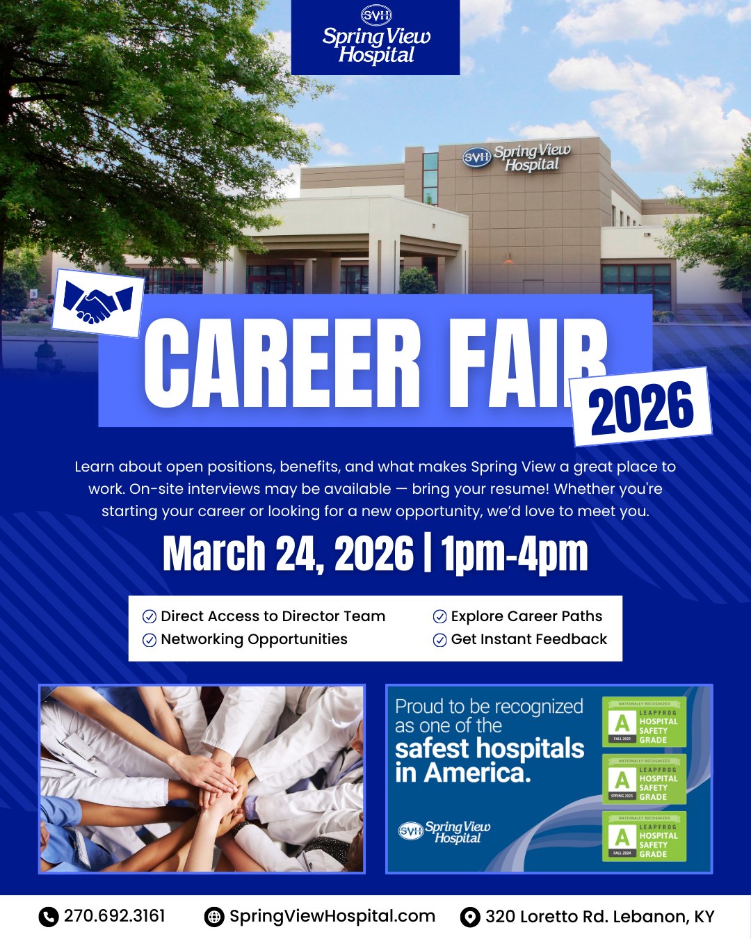 🎉 We’re excited to welcome YOU to Spring View Hospital’s 2026 Career Fair!