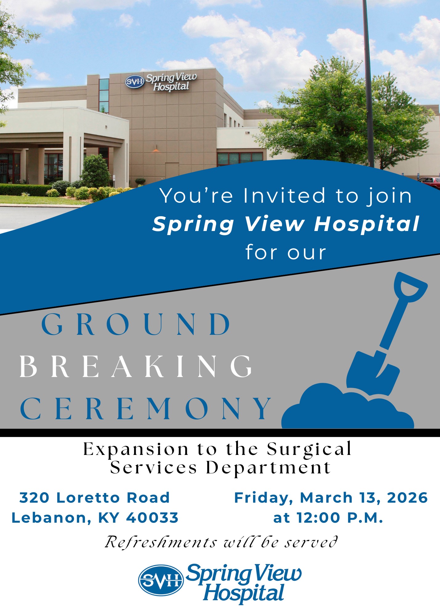 Springfield – Spring View Hospital will hold a groundbreaking ceremony for its new Surgical Services Expansion Project on Friday, March 13, 2026, at 12:00 p.m. on the hospital campus.