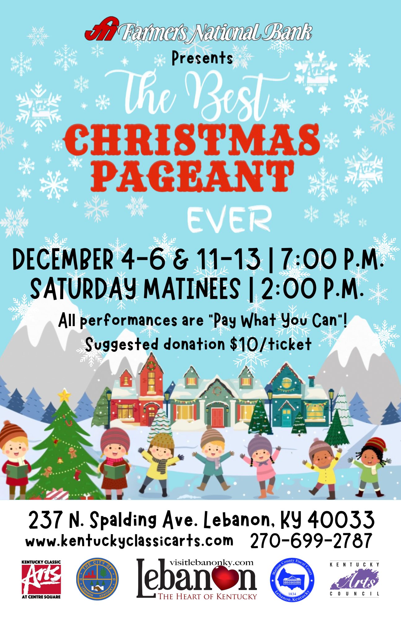 December 11, 12 and 13 at 7 p.m. nightly. Dec. 12 matinee at 2 p.m.