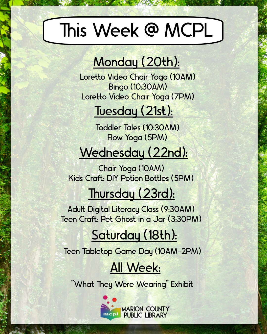 Here is a look at this week at MCPL!