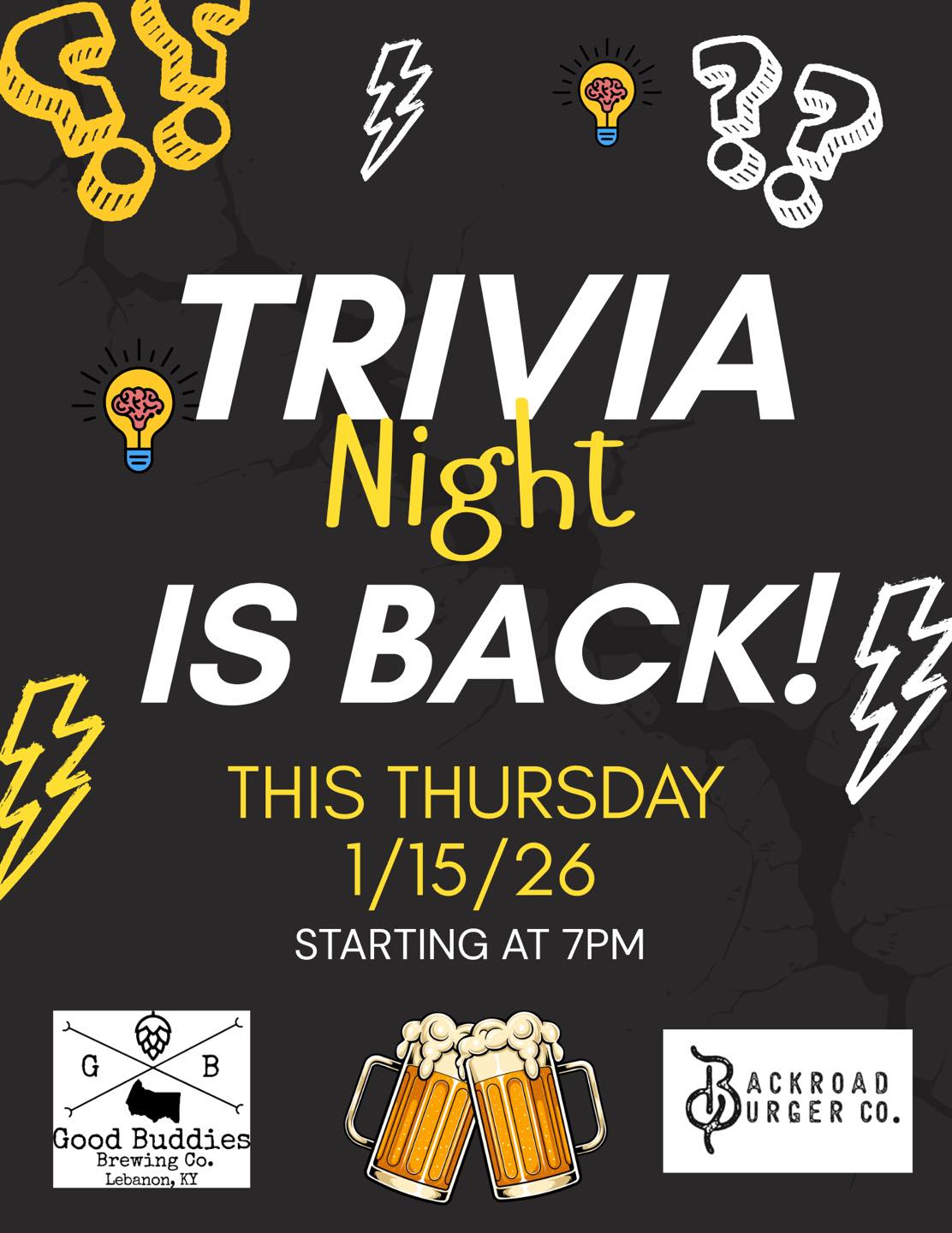 We’re excited to kick off our first Trivia Night in our NEW location this Thursday, January 15th!